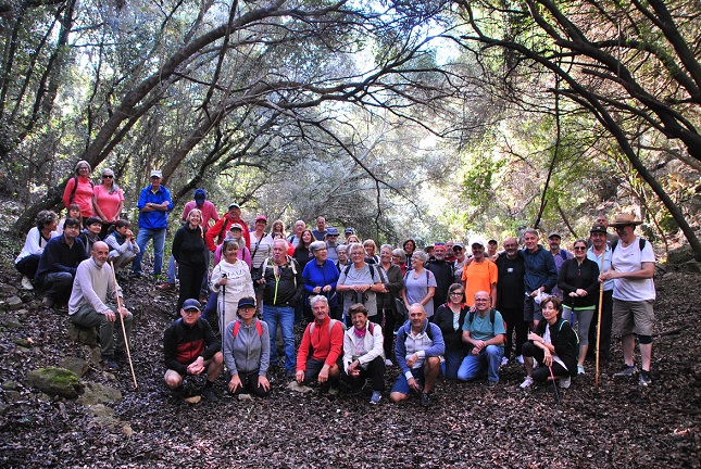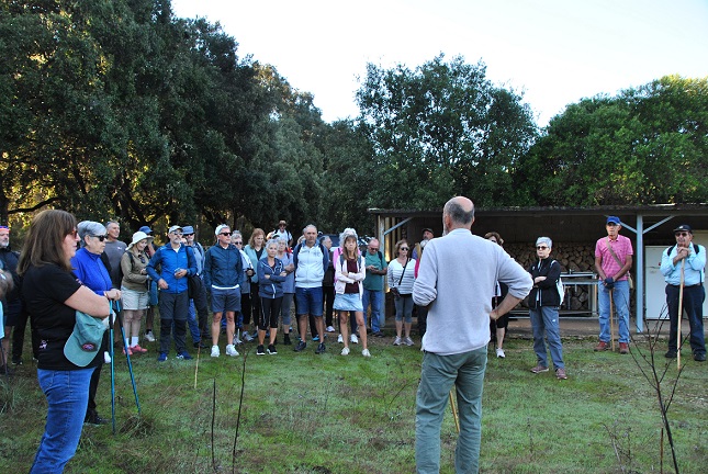 Vam penetrar dins els alzinars. Va ser quan vam tractar dels banys de bosc. Una pràctica reconeguda des de fa dècades al Japó. També anomenats banys forestals. Un passeig per dins el bosc augmenta l’hormona adiponectina. Els nivells baixos d’aquesta hormona es relacionen amb la obesitat, la diabetis mellitus tipus 2, les malalties cardiovasculars i la síndrome metabòlica, entre altres trastorns. Al Japó hi ha 44 boscos acreditats per fer-hi banys de bosc. Es respiren fitoncides (olis essencials de la fusta), són compostos volàtils amb activitat antimicrobiana derivats dels arbres. Al Japó estan reconeguts com a relaxants i per al tractament de l’estrès. Els fitoncides activen unes proteïnes que ens defensen de les infeccions i els tumors, disminueixen la pressió arterial i la freqüència cardíaca. També el contacte amb els bacteris de la terra de bosc és antidepressiu, eleva el nivell d’energia i el funcionament cognitiu. Els banys de bosc són recomanables dues vegades a la setmana. Vam debatre sobre les possibilitats de fer aquesta pràctica a Menorca davant l’actitud de més propietaris de restringir el trànsit per les propietats privades, quan a Menorca només hi ha Alfurí com a única zona forestal pública.