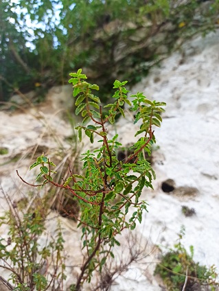 I quines espècies podem trobar en aquest indret boni bé màgic? La joia de la corona és, per a jo (és una apreciació personal), l’estepa joana (Hypericum balearicum), un endemisme balear, molt comú a Mallorca, però que a Menorca és raríssim. A Llucassaldent s’hi troben diversos peus de mida petita (i sent generosos, mitjana) que arrelen a les escletxes de la roca que han pogut recollir un poc de terra. Aquests peus s’han mantingut en el temps, com ho demostra la forta llenyositat del tronc i que, en visites personals espaiades per més de quaranta anys, la colònia segueix estable. Recordem, ja la cita Rodríguez Femenías el 1904. Aquest hàbit fissurícola és molt diferent al que presenta l’estepa joana a Mallorca, on abunda en forma de mates de bona mida dins la marina de tramuntana.