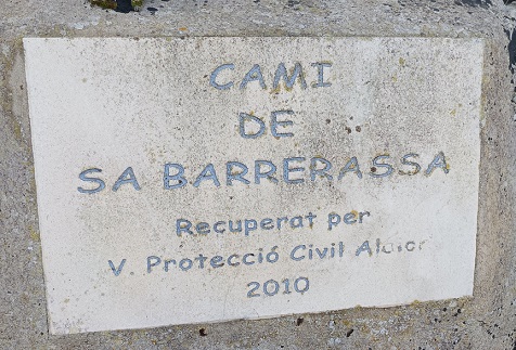 Este punto importante precisamente está a la entrada del camí de Sa Barrerassa recuperado por el voluntariado de Protección Civil en 2010. Se observa que a veces durante el trayecto hay algún árbol muerto recubierto de un musgo rizado de un curioso color verde grisáceo, lo cual le confiere pos mortem otro tipo de estética. En todo el camino a cada lado, las paredes de piedra seca fueron construidas años muy atrás – una obra de maestros, pero nadie del vecindario sabe decir con seguridad de cuándo son, o quiénes las hicieron. Un frondoso túnel de arbustos y matas flanquea todo este entorno dando una agradable sombra con frescor y sensación de cobijo. El camino serpentea, haciendo “barrera” entre los lindes de las propiedades a cada lado –de ahí el nombre del camino. El piso del sendero es variado, a veces plano sin rugosidades, a veces pedregoso o con tramos de piedra colocada en líneas para hacer más fácil el trayecto en aquellos tiempos de los carretones.