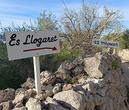 Luego de Binifamís, en la bifurcación que pronto aparece, se va a la derecha pasando al lado del predio es Llogaret. Al continuar, se alcanza la elegante avenida de árboles que conduce la vista a la finca es Taronger, propiedad de Pedro Sintes de Alaior durante 21 años, desde 1971 hasta 1992 cuando lo vendió. En 1973, él mismo plantó los pinos de la majestuosa avenida. Fuera de las barreras, todavía se conserva la piedra rectangular que servía para subir a un caballo.