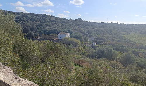 Como contraste, ahora toca subir la cuesta de Biniarbolla, nos damos tiempo para tomar un respiro y observar al lado de Biniarbolla la finca de los Enrich, a la derecha, enclavada entre árboles.