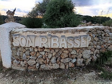 Arribam al següent cartell, és el de Son Ribasset, també obra artesanal en pedra. Començam la baixada cap a s’Hort d’en Rellotge, que es veu a l’esquerra. Propietat des de fa anys d’una senyora francesa, l’hort durant 39 anys va ser regentat per Bartolomé Olives Pons d’Alaior, intel·ligent expert en tot el món hortolà. Venia tot tipus de fruites (peres, prunes, pomes d’en Kane i magranes…). L’hort, amb el torrent que corre pel mig, està situat al barranc que arriba fins a Cala en Porter. En un temps vivien entre 30 i 25 famílies del conreu de la fruita. Però avui dia, lamentablement, només s’ocupen 7 grups familiars. El 15 agost 2024, la gota freda va devastar aquest hort per les ingents quantitats d’aigua i es van perdre els arbres fruiters.